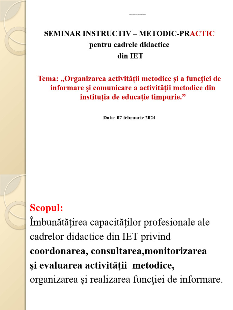 SEMINAR INSTRUCTIV – METODIC-PRACTIC