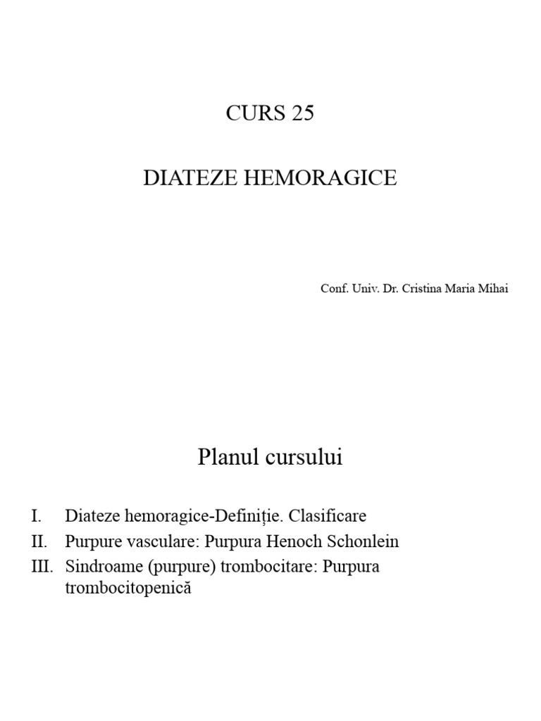 I. Purpure vasculare (diateze hemoragice prin anomalii ale