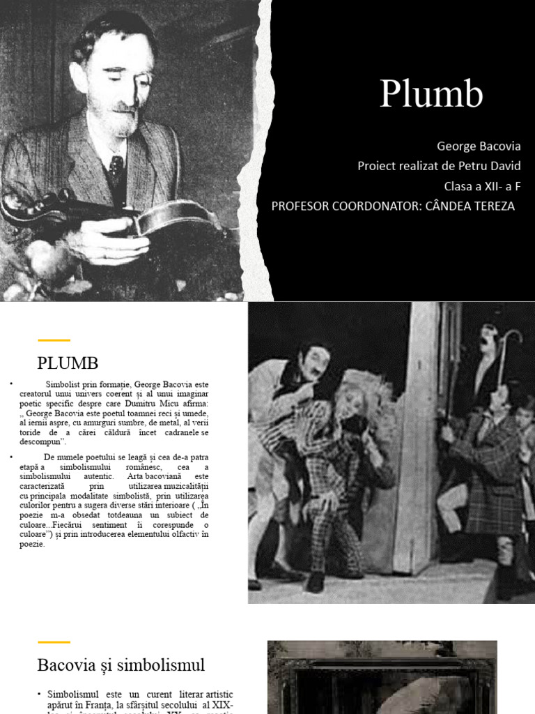 poezia ,,Plumb” de George Bacovia se încadrează în estetica simbolistă.