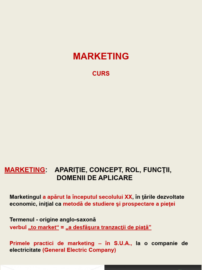 MARKETING: APARIŢIE, CONCEPT, ROL, FUNCŢII,