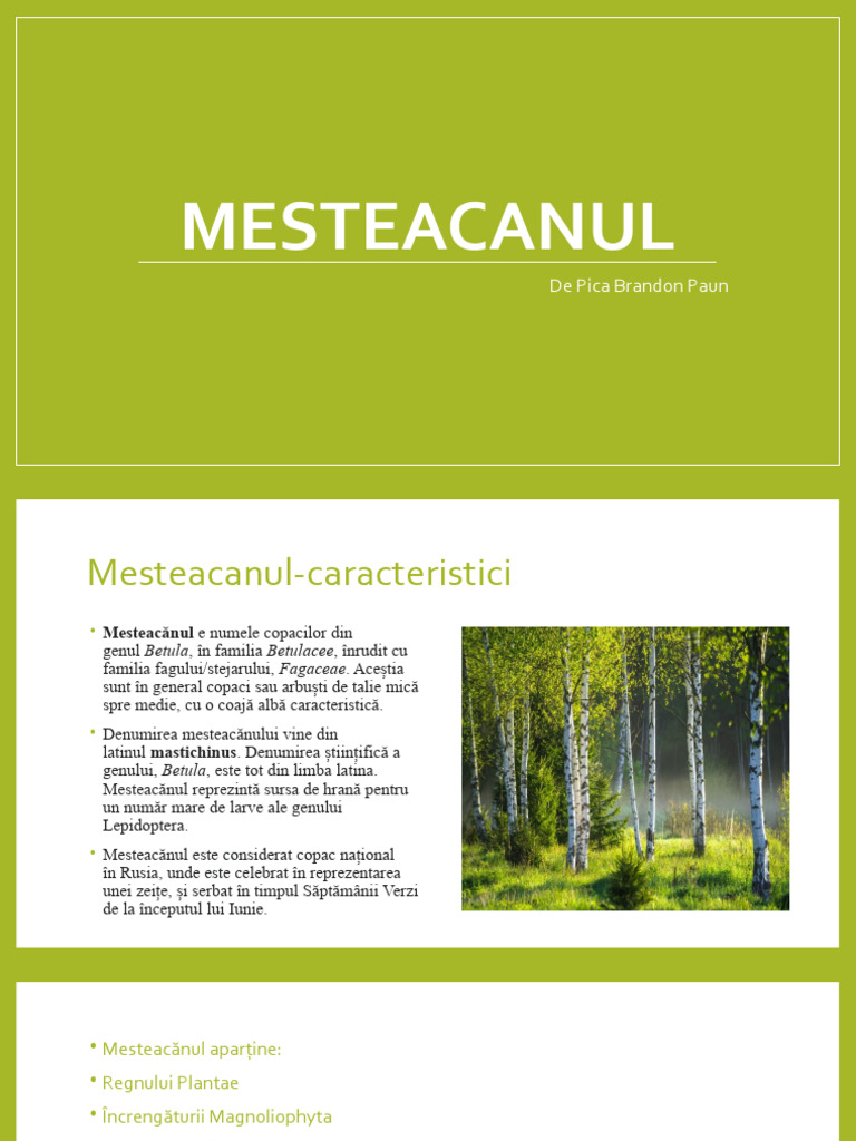 • Mesteacănul e numele copacilor din