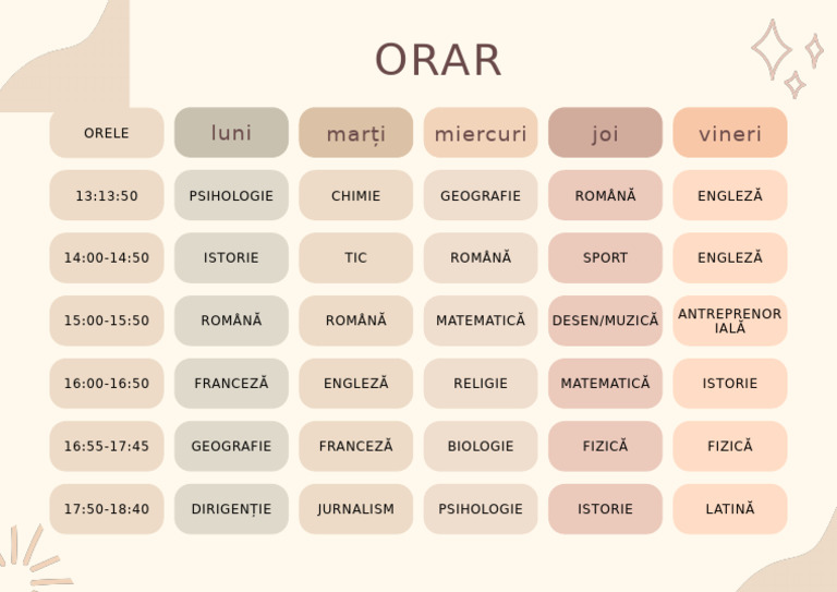 16:55-17:45 GEOGRAFIE FRANCEZĂ BIOLOGIE FIZICĂ FIZICĂ