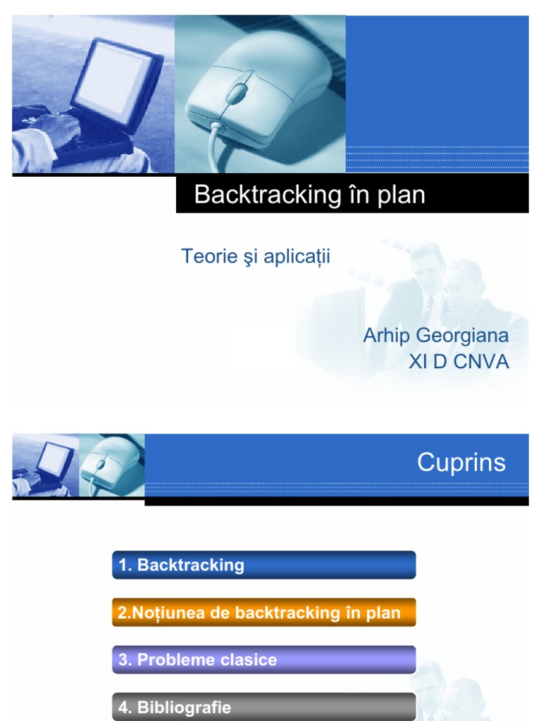 1. Backtracking [Link] iunea de backtracking n plan 3. Probleme clasice 4. Bibliografie