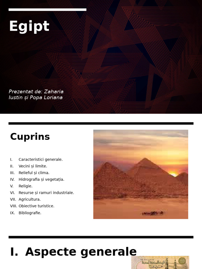 VI. Resurse și Ramuri industriale ale Egiptului: