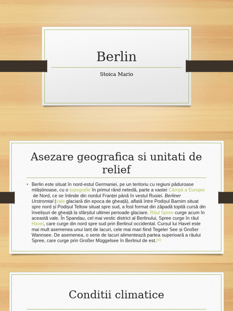 • Berlin este situat în nord-estul Germaniei, pe un teritoriu cu regiuni păduroase