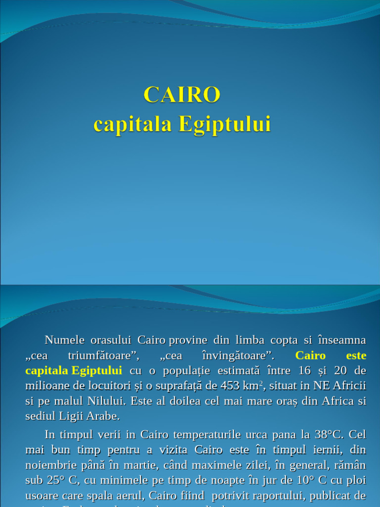capitala Egiptului cu o populație estimată între 16 și 20 de