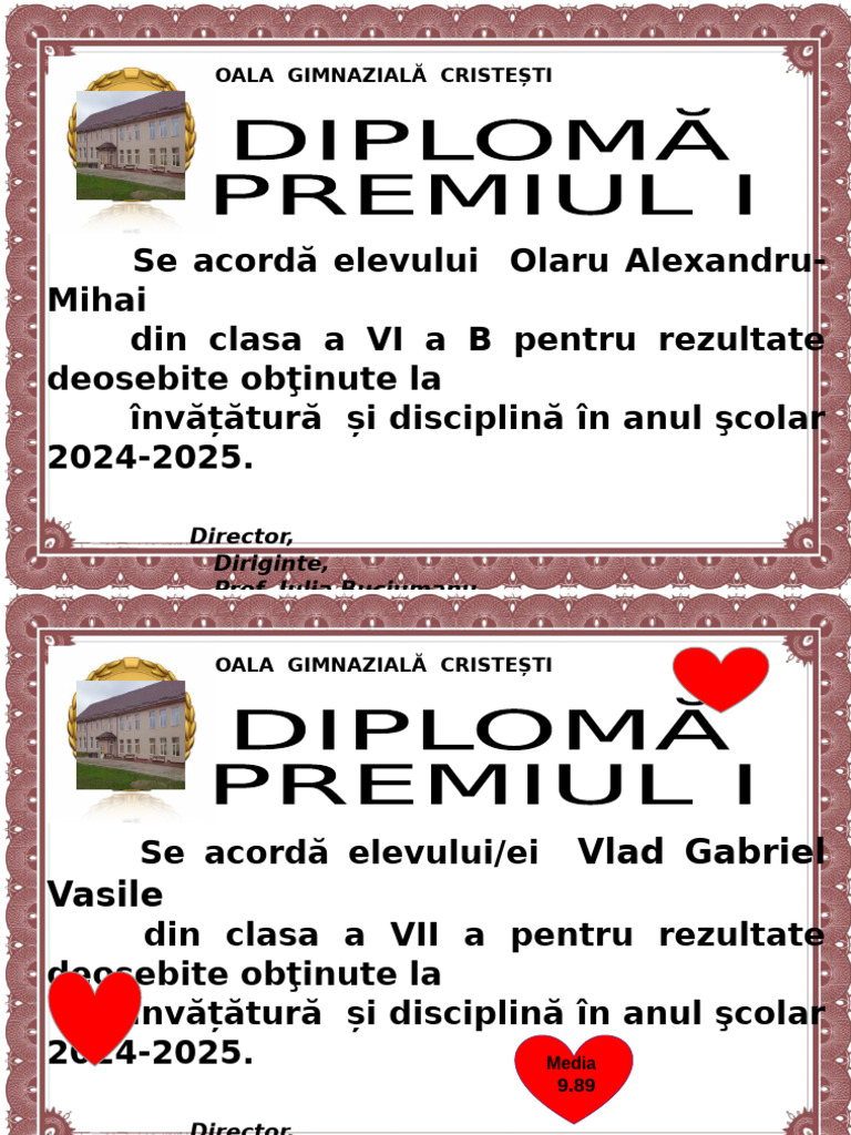 Se acordă elevului/ei Vlad Gabriel