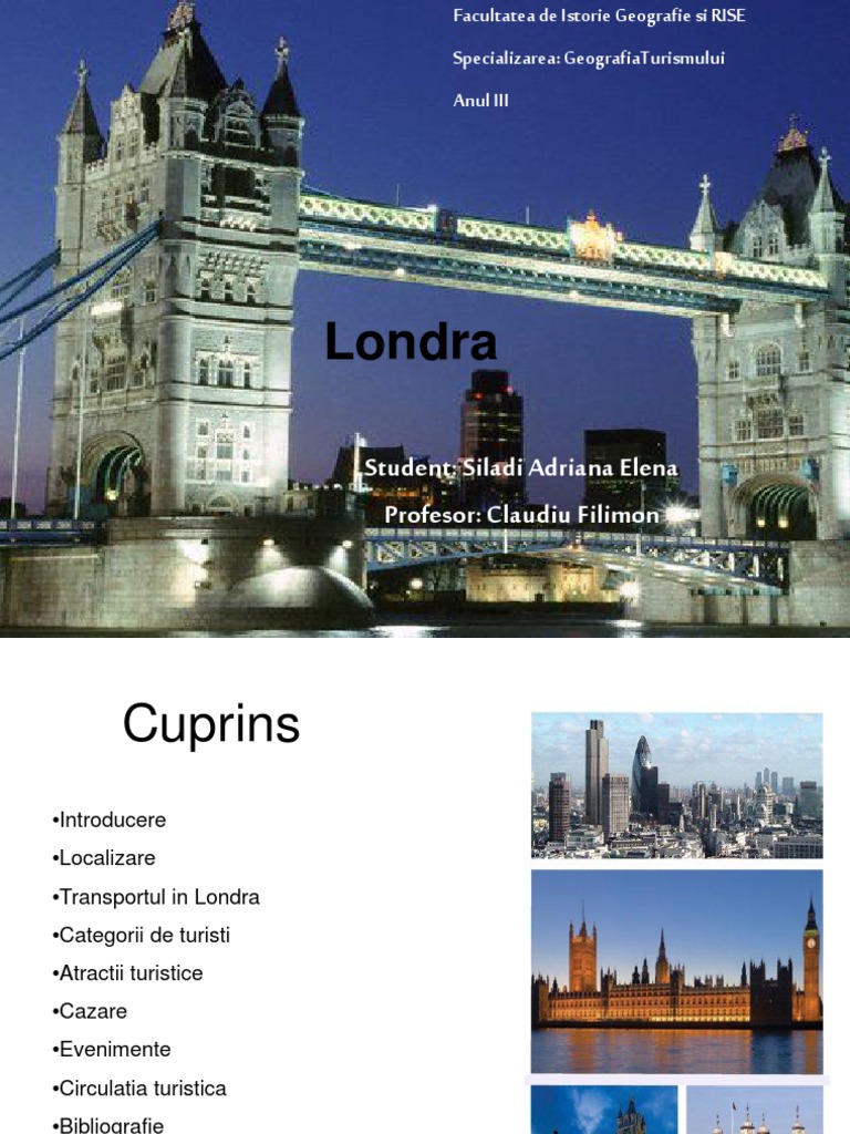 Londra, capitala Angliei si a Regatului Unit al Marii Britanii a fost centrul Imperiului Britanic generatii intregi si este un oras modern si plin de istorie in acelasi timp. Se spune ca daca vrei sa iti faci o parere corecta despre maretia acestui oras nu trebuie sa te multumesti doar cu a-i vizita strazile mari si parcurile, ci trebuie sa-i strabati nenumaratele stradute sau cartierele marginase. Cu o bogata mostenire culturala si istorica, acest oras este totodata un punct central al multor evenimente internationale. Pentru unii, Londra insumeaza toate viciile dar si toate virtutile omenirii, si de aceea Londra a fost adesea damnata precum si laudata. Pentru altii, ceata deasa sau vremea umeda care au dus la aparitia unei intregi industrii in moda britanica, sau Bursa Londoneza care furnizeaza o piata comerciala intens activa si eficienta, sunt doar putine din marcile asociate in mod inevitabil Londrei