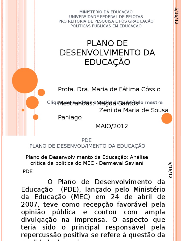 PDE PLANO DE DESENVOLVIMENTO DA EDUCAO Plano de Desenvolvimento da Educao: Anlise crtica da poltica do MEC - Dermeval Saviani PDE